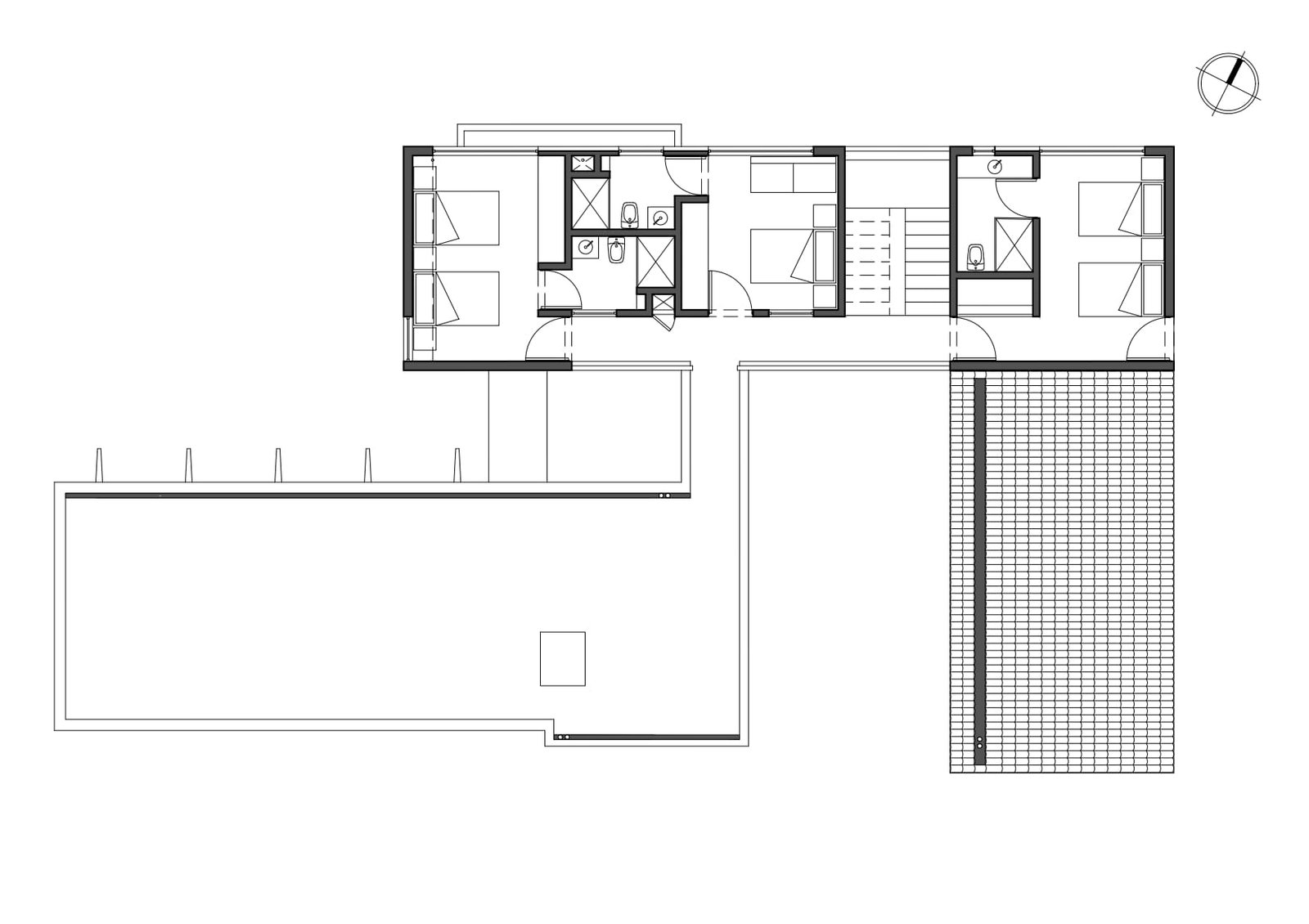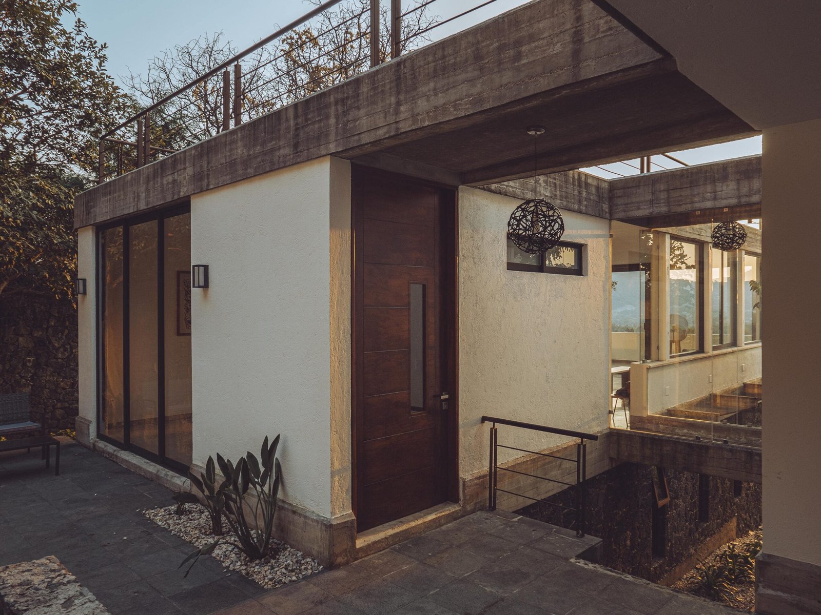 The program needed to be flexible for use by the nuclear family and their guests independently while maintaining compositional unity. The layout was solved using three juxtaposed volumes, allowing for contact with the exterior while adapting to a steep topography. The views from the house were planned to take advantage of the privileged vistas of this location.