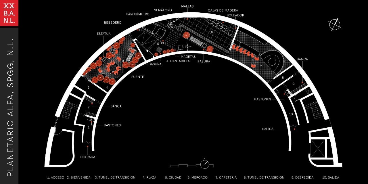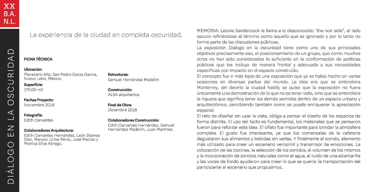 En el extinto Planetario ALFA con sus caprichosas salas de exhibición en media luna, se concibió un espacio museográfico para dar cabida a la exposición de Diálogo en la Oscuridad, un espacio destinado a mostrar las experiencias cotidianas que tiene una persona ciega en una ciudad que no está habilitada para su libre movimiento. La exposición se desenvuelve en completa oscuridad.