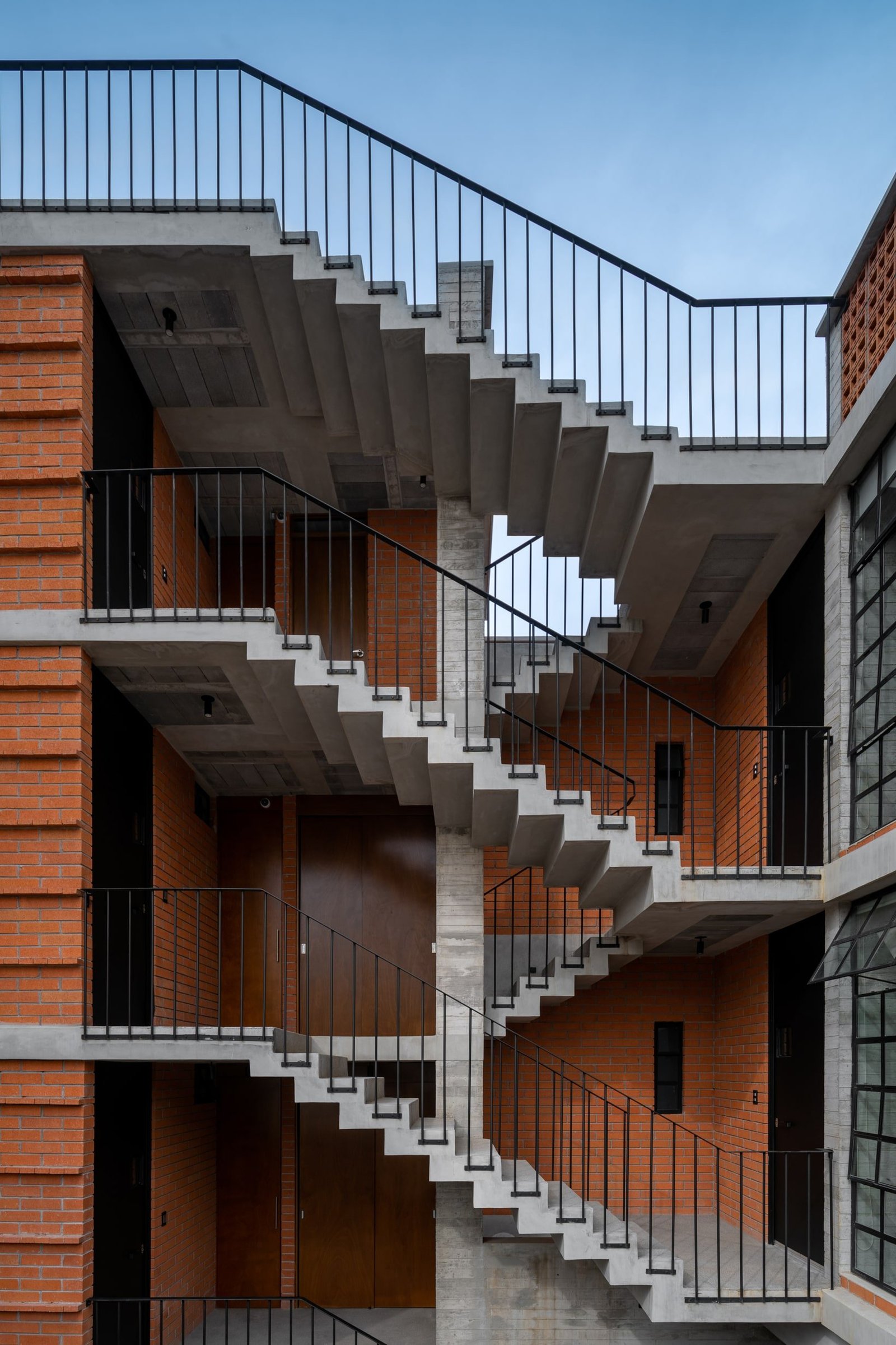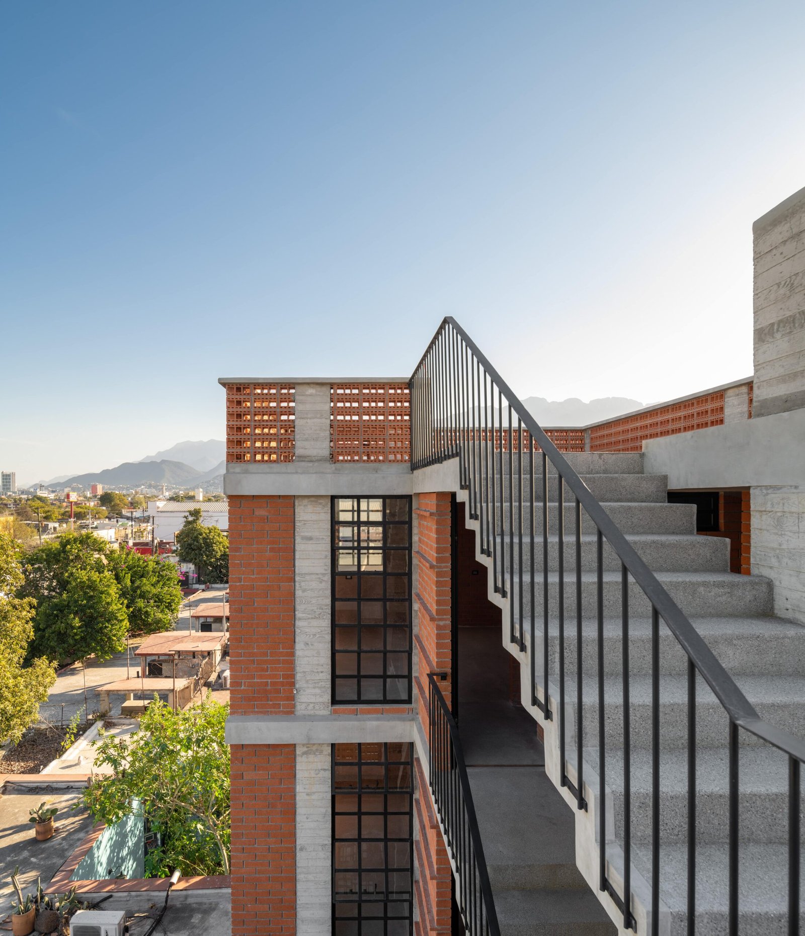 This project reflects its role in the geographical context. The active ground floor aims to become a gathering point in the neighborhood. The internal program is distributed through concrete platforms containing the housing units that rise in half-levels, culminating in two terraces that offer panoramic views of Monterrey and its mountains.